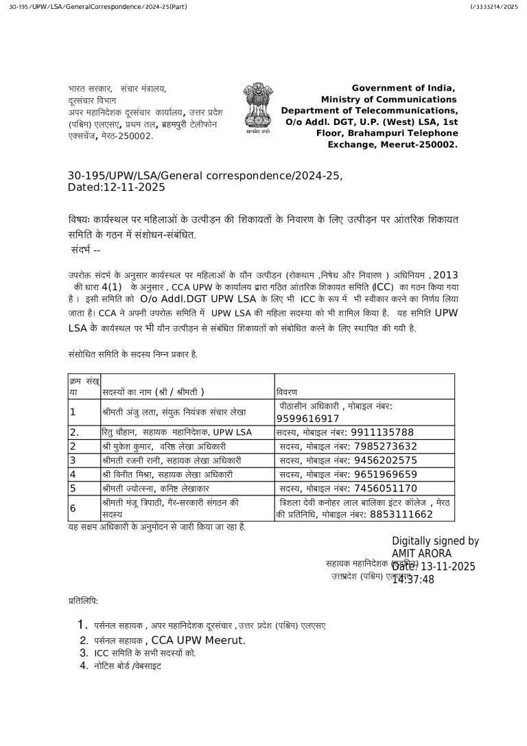 (सूचना - कार्यस्थल पर महिलाओं पर उत्पीड़न की शिकायतों के निवारण हेतु यौन उत्पीड़न पर आंतरिक शिकायत समिति का गठन)